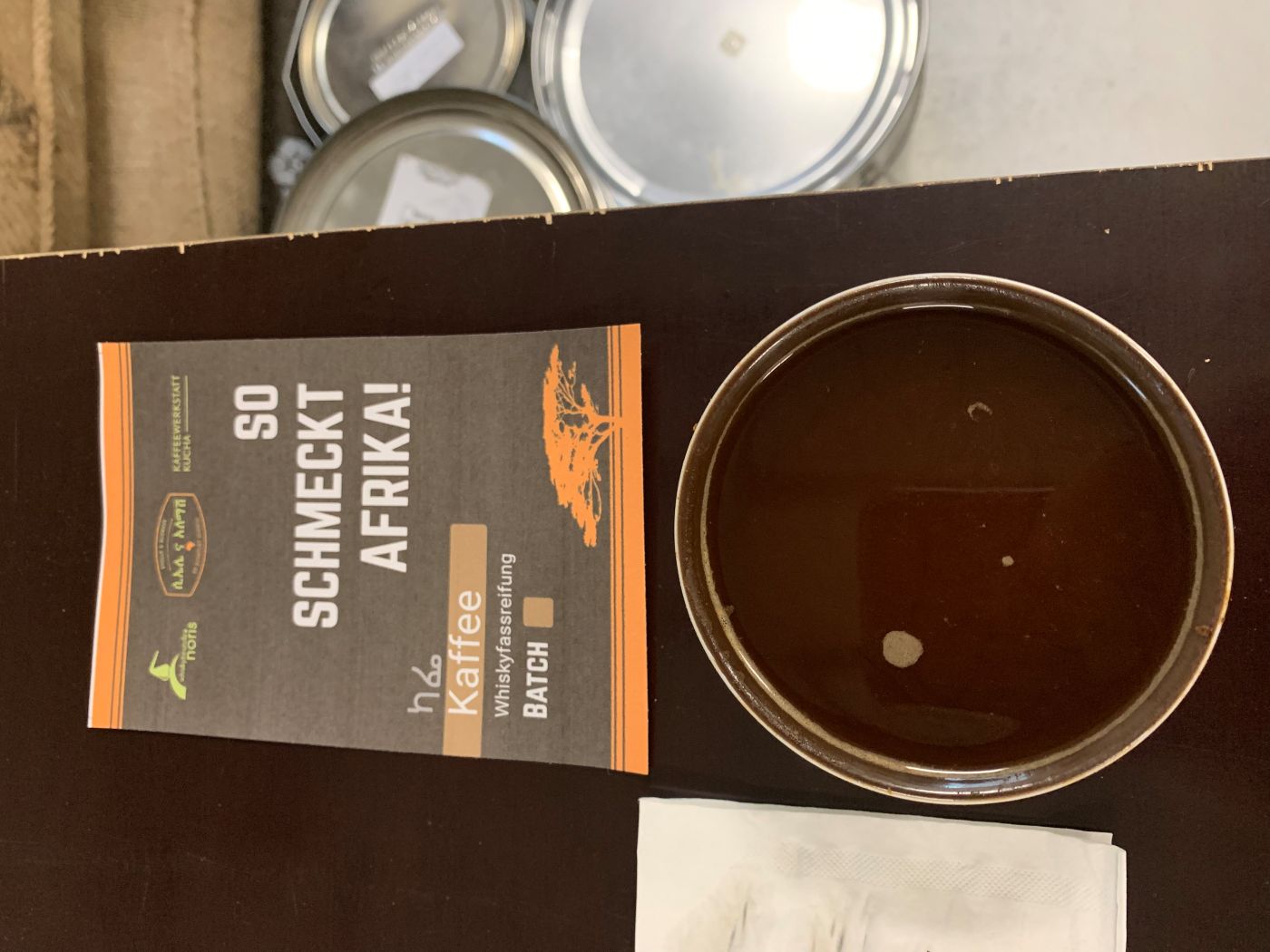 Neue sind in Arbeit – um dennoch den Kaffee anbieten zu können, entscheiden wir uns, die Etiketten der Kaffeewerkstatt zu verwenden – ja auch nicht die schlechteste Variante…