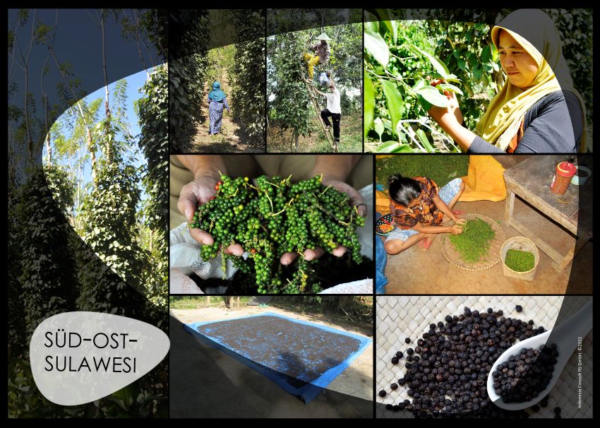 Der weltweit bekannte weiße Muntok Pfeffer wächst auf den Inseln Bangka und Belitung meist in Klein-Plantagen nach traditioneller Art. Auch in Sulawesi und einigen anderen Regionen Indonesiens wird weißer Pfeffer produziert.