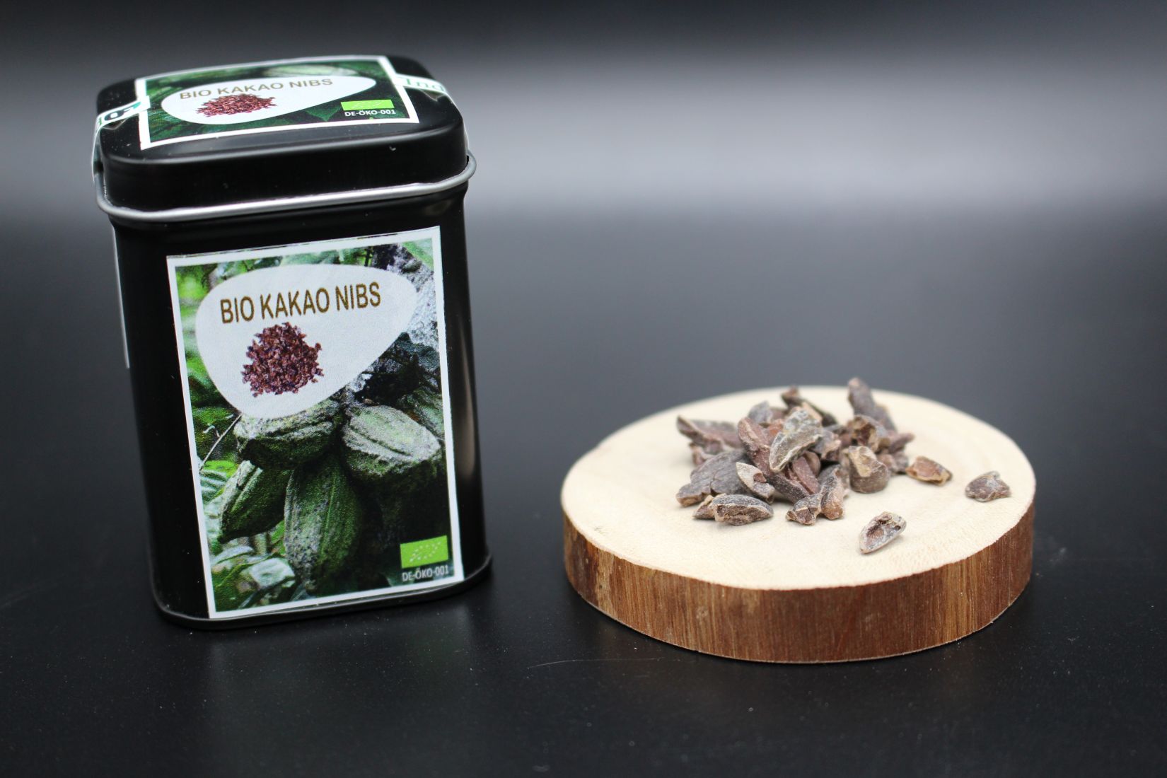 Die Kakaobohnen sind eigentlich der Samen und diese befinden sich zu 20-50 Stück in der Kakaofrucht, welche direkt am Stamm wächst. Für unsere Kakao Nibs werden die Bohnen mit dem Fruchtfleisch zunächst fermentiert und dann in der Sonne getrocknet. Bei der Fermentation verlieren die Bohnen einen Teil der Bitter- und Scharfstoffe, werden milder und entwickeln ausgeprägte Aromen. Einer der wichtigsten Inhaltsstoffe ist das Theobromin.