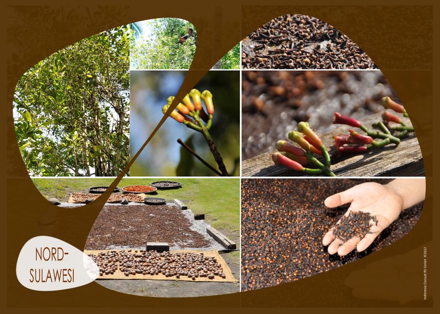 Die Gewürznelken wachsen in vielen Gegenden Indonesiens, aber insbesondere in Sulawesi und auf den Molukken lassen sich Gewürznelken höchster Qualität mit sehr hohem Ölgehalt und üppigem Stängel finden. Im Mischanbau mit Muskatnüssen, Kokospalmen und diversen Früchten entwickeln sie ihre besondere Qualität.