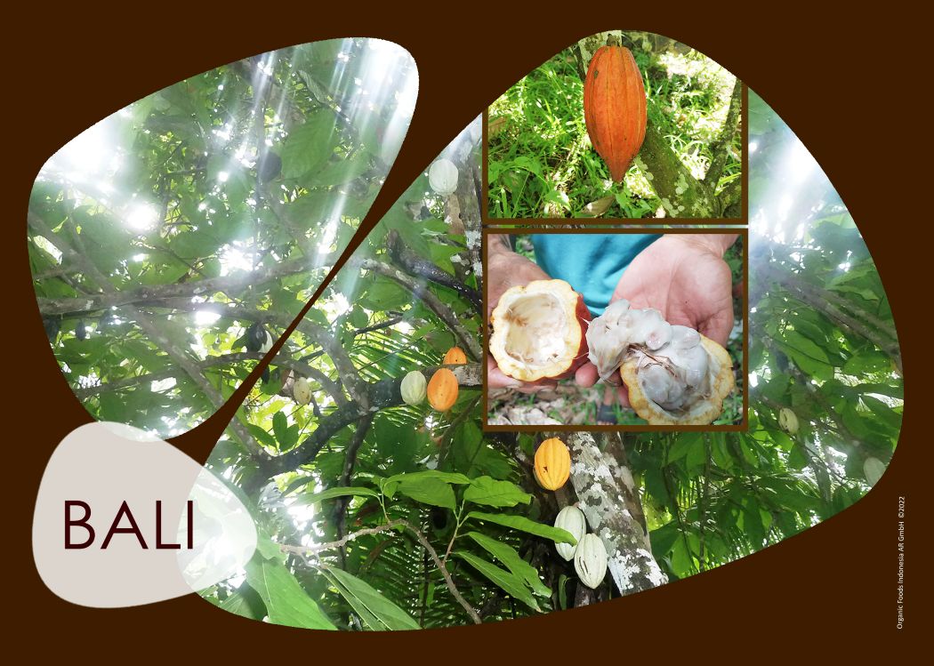 Kakao eines der ältesten Genussmittel kam wohl über Mittelamerika in die Genusswelt. Wir beziehen unseren Forastero Kakao von der wohl bekanntesten Insel Indonesiens – Bali. Nordwestlich vom Trubel Denpasars und abseits touristischer Pfade findet sich das Dorf Angkah auf ca. 300m ü. NN im wenig besiedelten Bezirk Tabanan. Hier lebt und arbeitet unsere zertifizierte ca. 40 köpfige Farmer Community. Auf ihrem Farmland wachsen neben Kakao vor allem auch Durian Bäume.
