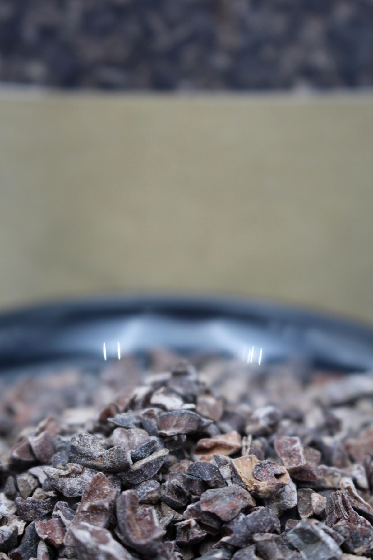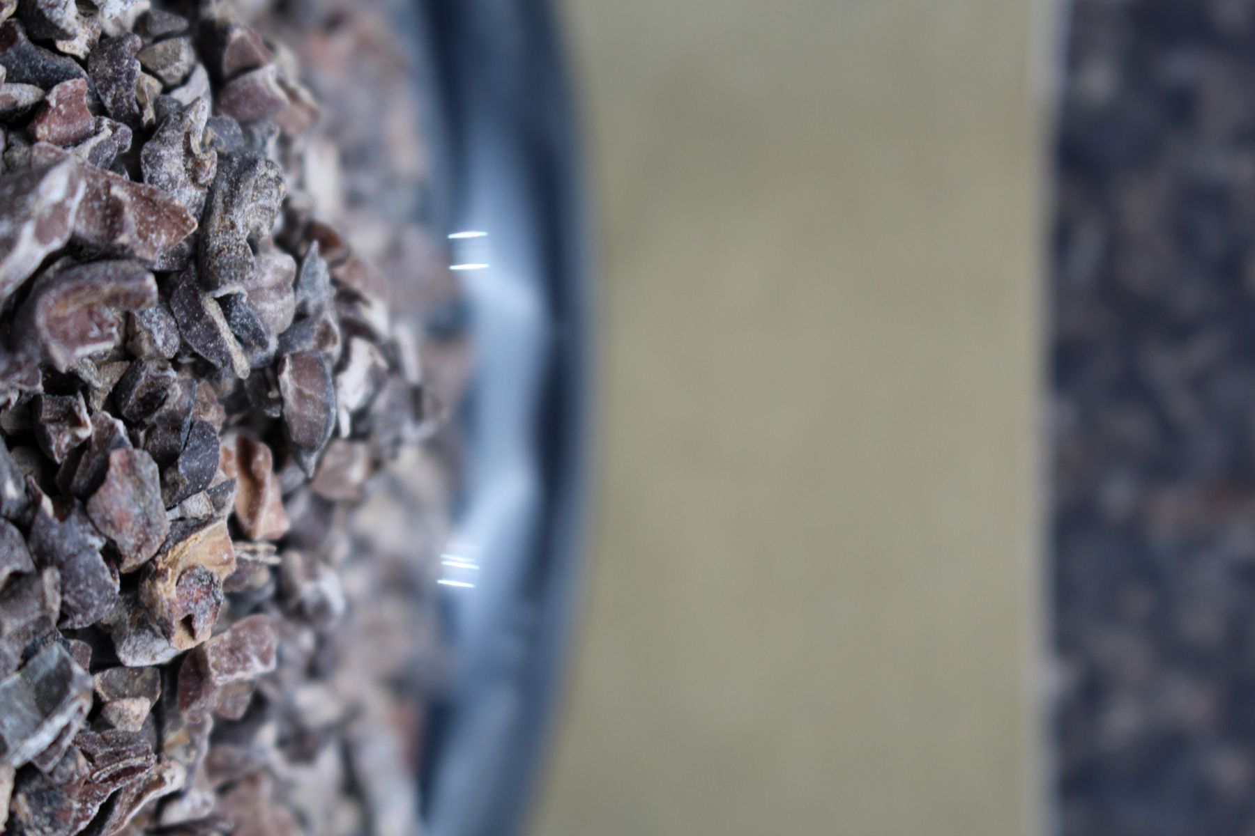 Die Kakaobohnen sind eigentlich der Samen und diese befinden sich zu 20-50 Stück in der Kakaofrucht, welche direkt am Stamm wächst. Für unsere Kakao Nibs werden die Bohnen mit dem Fruchtfleisch zunächst fermentiert und dann in der Sonne getrocknet. Bei der Fermentation verlieren die Bohnen einen Teil der Bitter- und Scharfstoffe, werden milder und entwickeln ausgeprägte Aromen. Einer der wichtigsten Inhaltsstoffe ist das Theobromin.